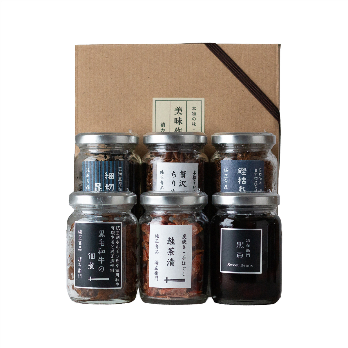小びん6本Kセット(鮭・和牛・ちりめん・細切昆布・鰹・黒豆)