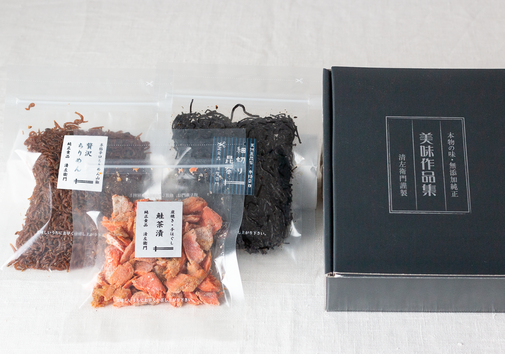 【詰合せ内容】鮭茶漬、贅沢ちりめん、細切り昆布